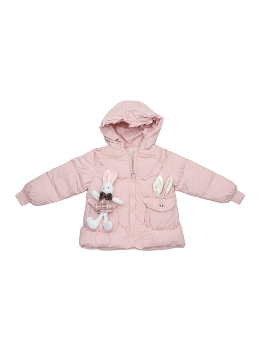 Soft, warm and adorable jacket with attached bunny toy and bunny ear pocket design – perfect for cozy winter days.